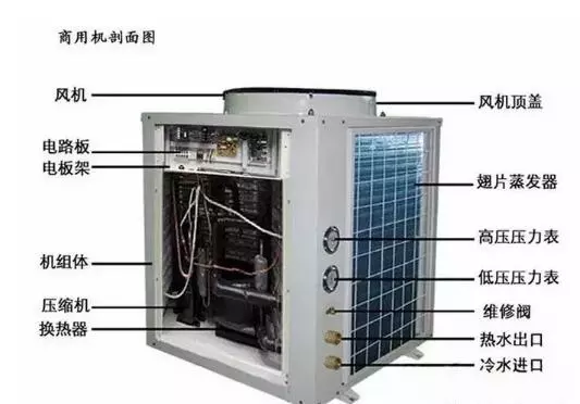 空气源热泵主要由压缩机、膨胀阀、翅片换热器、套管换热器这四大部件组成的,通过电能的输入驱动压缩机、电机做功,让翅片换热器实现吸热,套管换热器放热的过程,制热效果高达380%,是目前最节能的热源设备之一,使用过程中,安全、环保、高效是它的主要特点。